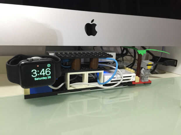 De todos modos, me enteré de que el soporte de reloj de Apple debe ser un poco más alto que hay más espacio para la correa de reloj. Terminé añadiendo un grueso bloque para moverlo hacia arriba.