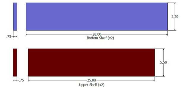 Un divertido e interesante diseño que no tardaron en construir.Paso 1: Cortar las tablasSe necesita 6 tableros.1) 12 "x 5 1/2" (la base)1) 2 1/2 ' x 5 1/2"(el soporte)2) 11 "x 5 1/2" (los estantes superiores)2) 16 "x 5 1/2&qu
