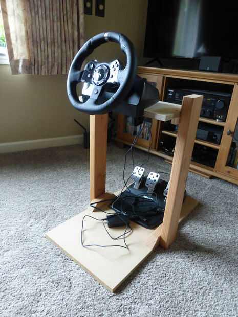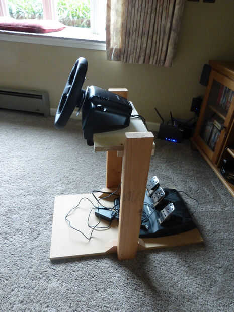 En primer lugar llamó un soporte rápido y simple de 2 x 4, trozos de MDF y madera contrachapada para asegurarse me metía las dimensiones derecha. La rueda en una altura cómoda y caja pedal de retroceder a la distancia adecuada es esencial para su felicidad futuro juego. Decidí, por el bien de mi espacio de sala de estar y mi matrimonio, para sólo utilizar el sofá como mi asiento en vez de ir todos en un cubo de carreras asiento, así que es lo que permite configurar mis dimensiones.