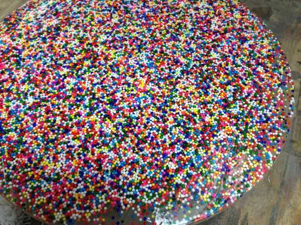 El casting salió gran! Los sprinkles se asentaron en la parte inferior (ahora la parte superior) y fue super colorido!