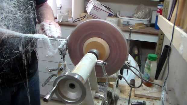 Tenía un borde dentado necesita limpieza para arriba. Estaba realmente preocupada que el epoxi sería frágil y romperse en pedazos en el torno. No es el caso. Salió en largas espirales y diseminación por toda la tienda como cob-webs de epoxy. Un efecto muy cool pero desordenado!