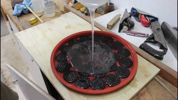 Me tomó 4 vierte a conseguirlo para cubrir completamente la galletas Oreo. Esperé 24 horas entre vaciados y 3 semanas después de la última de ellas a curar totalmente y endurecen. Incluso después de que terminé haciendo uno vierta más para hacerlo un poco más grueso. El monto total fue de 30oz, dar o tomar.