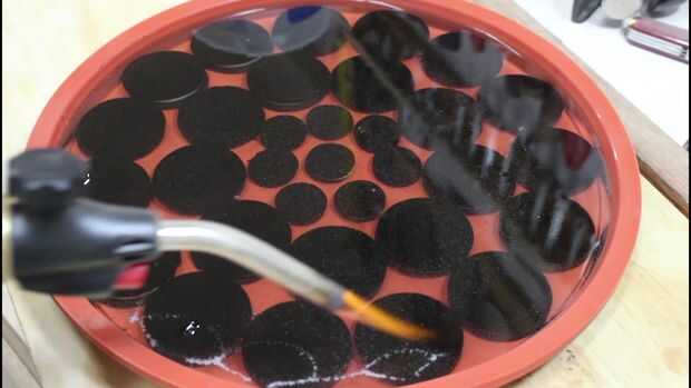 Asegúrese de que el molde sobre una superficie plana y nivelada, luego Vierta las primera de 6 onzas. Después un pour obtendrá un número de burbujas. Las burbujas se echan a perder tu casting si te los dejo. Me decidí a golpear con mi soplete de propano. Es mejor usar el ajuste más bajo posible, ya que demasiado calor puede destruir a un casting y quemar la resina. Unos pasos rápidos y las burbujas eran todos sino desaparecidas. Es una buena idea para comprobar su bastidor 20 minutos después el vertido. Si hay cualquier más burbujas reventarlas con calor antes.