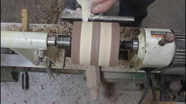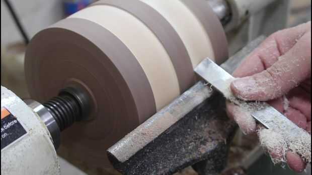 Si usted toma un cortes ligeros con una rasqueta afilada puede obtener una superficie muy limpia que requiere muy poco lijado. Que siempre es bueno. Utilicé papel de arena de grano 220 para terminar antes de tomar la columna de la galleta del torno. A continuación se unió a la parte superior e inferior con una espiga de 3/8 y algunos pegamento para madera y esperó 24 horas para esperar a que el pegamento se seque.