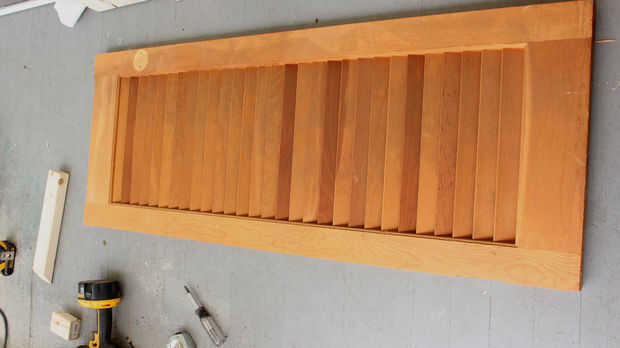 Comencé cortando la puerta abajo a la sección de persiana para que sea más fácil trabajar con. Entonces, pensé Qué altura y anchura que quería utilizar. Me imaginé una puerta de altura 24" sería buena, y yo no tendría que preocuparse por el ancho todavía.