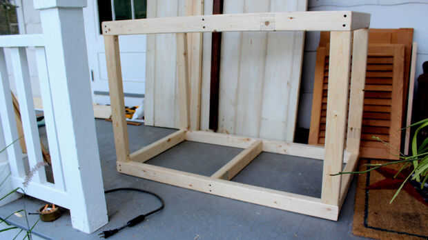 Usé 2 "x 3" doug fir postes para construir el marco. He construido dos 24 cajas rectangulares "x 42" con un perno en el centro de cada uno para fortalecer para arriba un poco.