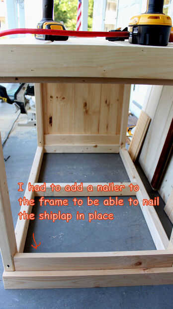 No tienes que hacerlo de la manera lo hizo, de hecho la mayoría probablemente haría lo contrario. Usted puede preferir tener a recortar más expuestos. Simplemente cubrir la parte superior y los lados con el shiplap primero. Luego, instale la moldura alrededor de los bordes.