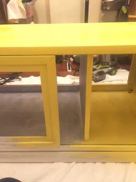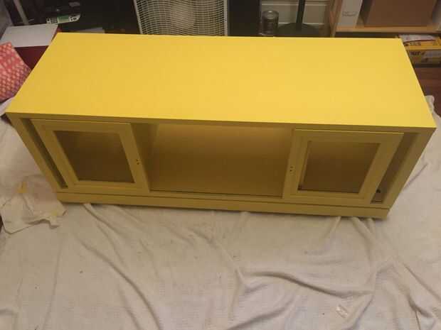 Después de la imprimación se seque, aplicar la pintura! Utilizamos tres capas para cubrir uniformemente el soporte de la TV.