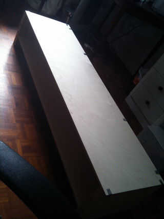 Sólo se despertó una mañana y decidió que quería hacer una mesa para la TV. Redacté una idea aproximada en Google Sketchup y el resto fue historia. No tenía conocimiento de la construcción de muebles, pero tenían poca experiencia con lego!