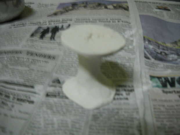 Rodar una pelota un poco más grande que los utilizados para la base y la pieza superior. Este rodillo en forma de salchicha gruesa. Este es el paso difícil y ayuda si usted tiene experiencia con la arcilla, pero bueno lo hice y soy un rechazo del arte. Tan espesa por los extremos, dándole un aspecto cóncavo en ambos lados. Usé mis dedos por los extremos superior e inferior y a moldear la parte media en forma cóncava. Si quieres pero no aconsejo que podría dejarlo recto y y un montón de impresiones en él. lo que funcione para usted.