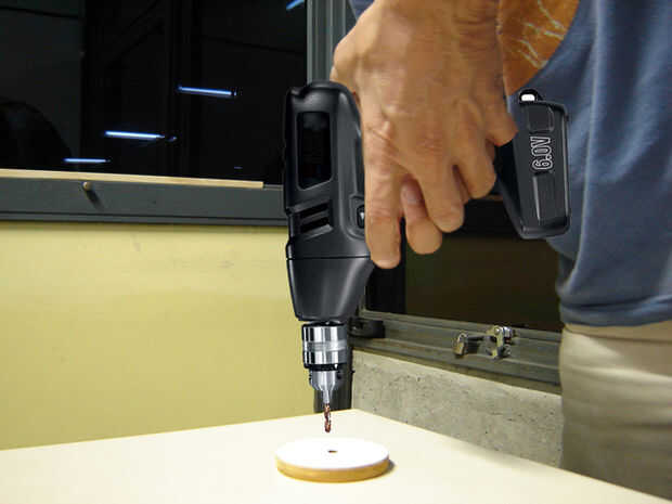 Hacer un agujero de 6mm de ancho en el centro de la pieza.