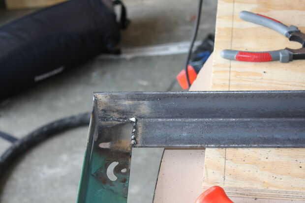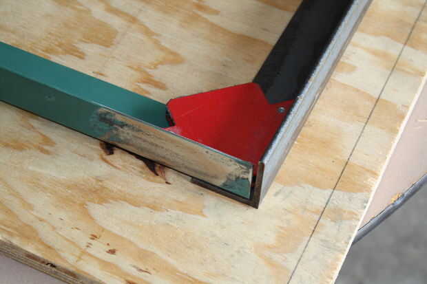 Encontrar estos cuadrados magnéticos a ser indispensable.  Yo siempre comprobar con una escuadra de gran ol ' viga para asegurarse que las esquinas dead-on.  Esto no será una guía sobre cómo soldar.  Hay muchas por ahí.  Sólo revisa las fotos y tratar de no burlarse de mis rudimentarios conocimientos de soldadura.  Hice ambos marcos superior en primer lugar, asegurándose de que todo es cuadrado por usar mi plaza de viga y medición así como de esquina a esquina.