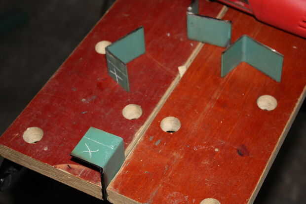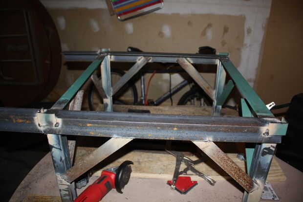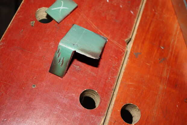 En este punto yo sabía que quería añadir algo al trabajo como un último recurso en el caso de la lavadora/secadora todavía probado a vibrar o a pie de stand. Lo que terminé haciendo es cortar pedazos pequeños de ángulo para envolver alrededor de las esquinas delanteras de las graderías. Para la parte posterior del soporte, tuve que fabricar las piezas que se muestra en las fotos para acomodar la forma la parte superior del marco extendido más allá de las patas traseras. Cortar, preparar y soldar en. ¿No espero que se necesiten, pero siento es mejor tener y no es necesario que la necesidad y no tienen derecho?