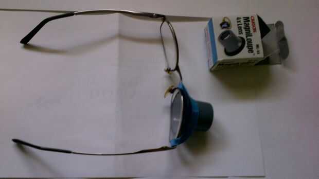 Encontré este método para la colocación de la magniloupe a mis anteojos de lectura muy útiles.