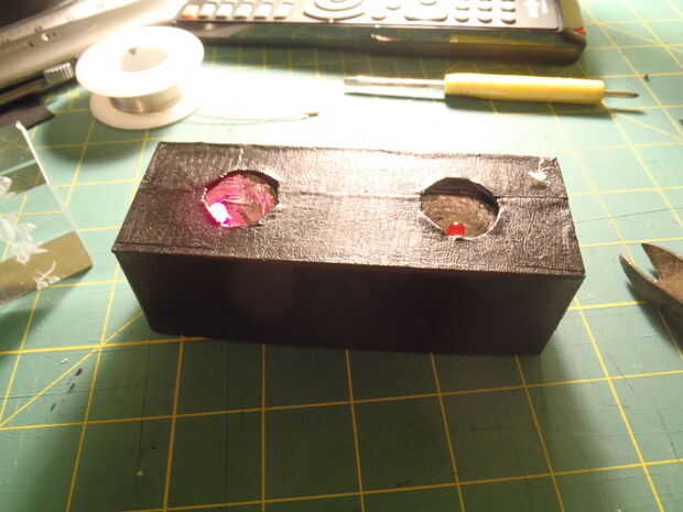 Pices de vidrio rotoBattery(9V) - 1LED - 1pieza de maderaGrifo de colorPaso 1: Lámpara de cristalPaso 2:Paso 3:Paso 4:Pedazos de cristal quebradoBattery(9V)LED -2