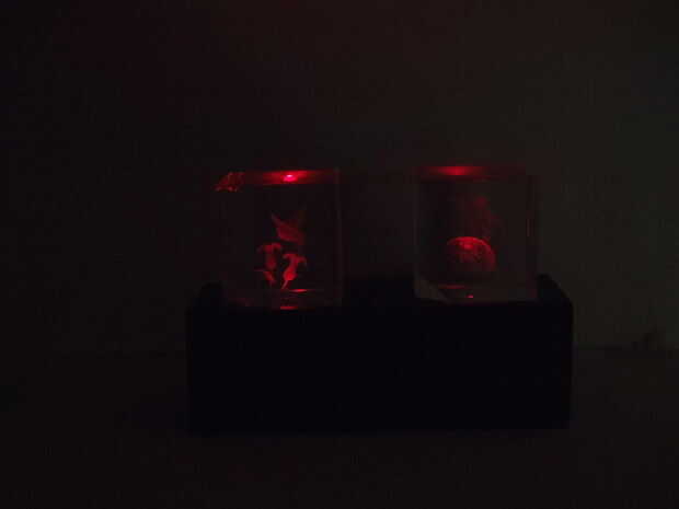 He empezado este proyecto como un vidrio de lado de la cama con función de iluminación. Cuando he avanzado exploré diferentes usos en diferentes contextos.Escenario de cristal de lado de cama:Cuando el usuario se despierta y necesita beber agua, él o