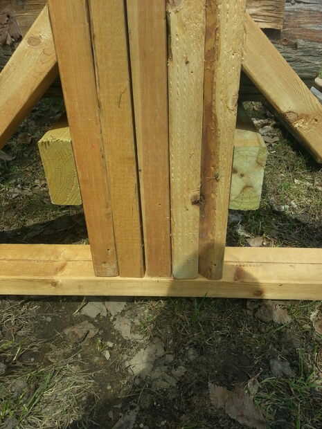 Ahora tendrá cuatro 3 pies 2 por 4. Gire el soporte al revés abajo y attatch dos de ellos en la parte inferior del soporte. Se trata de lo que se sienta en el suelo.