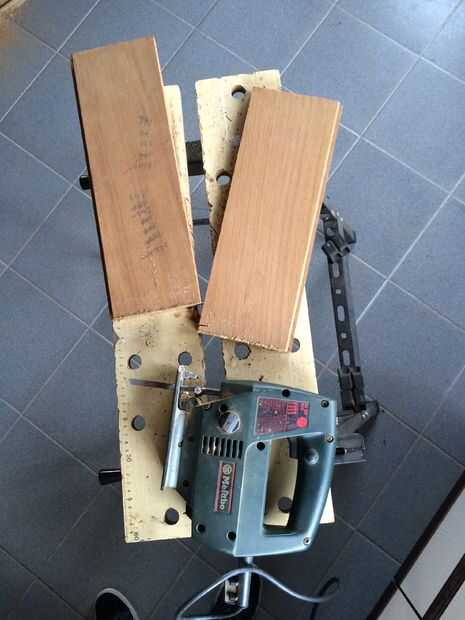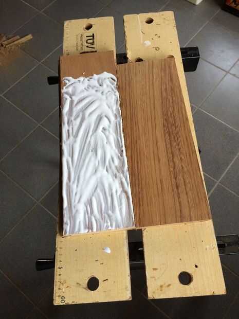 En primer lugar, tuve que encontrar una buena tabla que podría utilizar para el soporte de mi tablet. La tabla que usé fue aproximadamente 3/5" de espesor así que aserró en dos pedazos y pegados uno al otro. No utilice mucho pegamento como se puede ver que hice. Porque he experimentado que si utilizas para mucho pegamento, derrama por todos los lados :)