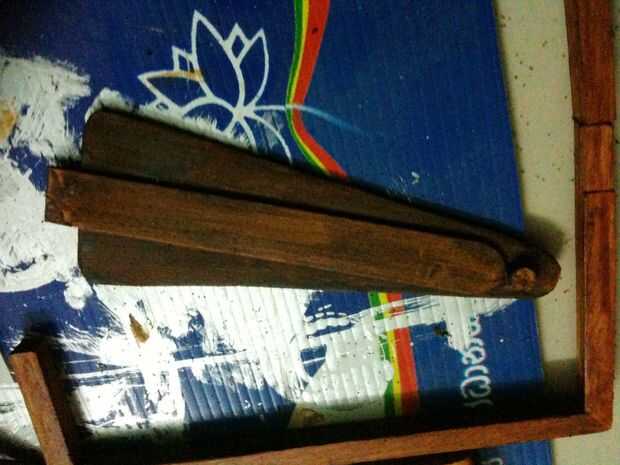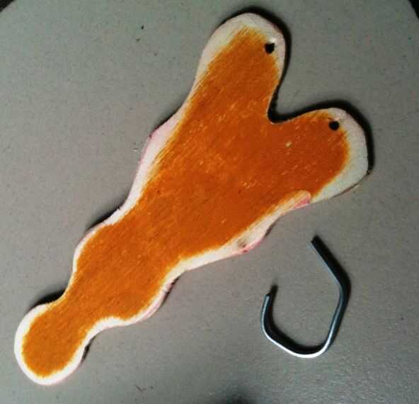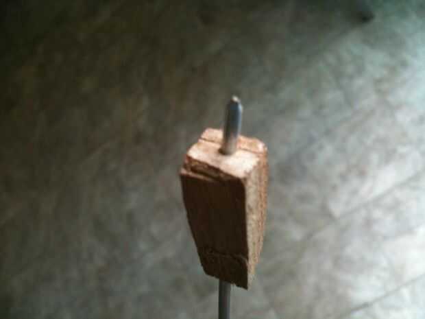 Coloque el palito en la solapa como en la foto. Añadir una tuerca al final para dar peso. cubrí el agujero de la tuerca con relleno.