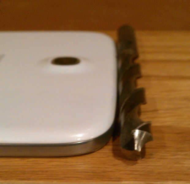 Al dibujar un lado del soporte de considerar el espesor de la tableta. Usted puede encontrar una broca más grande que el grosor de su tableta para facilitar el corte de los 'pasos' del stand.