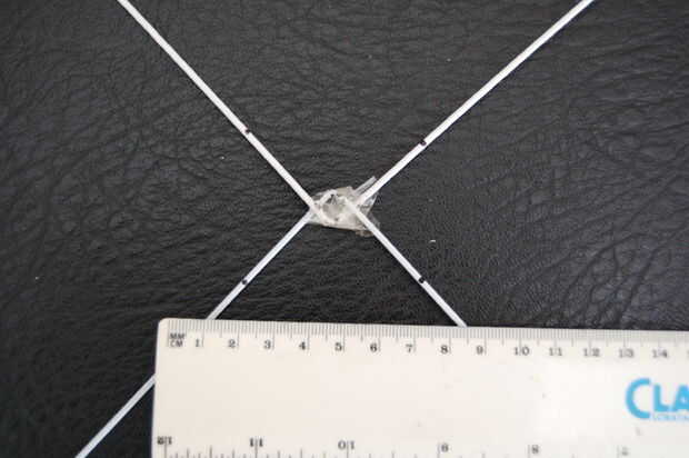 Luego engancharlos entre sí y, sujetando firmemente con las pinzas, dobla las cuatro un poco al cruzar entre sí para que todo quede plana