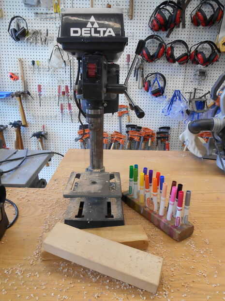 Fui a los maestros de infancia temprana en mi escuela y pregunté por bloques de edad. Recopilé bloques que fueron 11 X 2.5, quería cada soporte para 16 colores diferentes de marcadores.