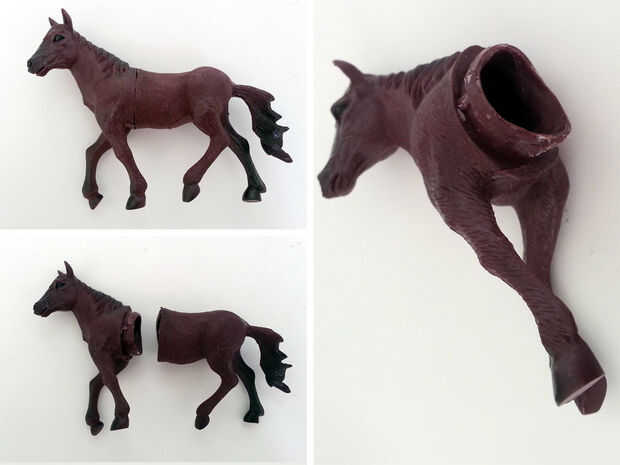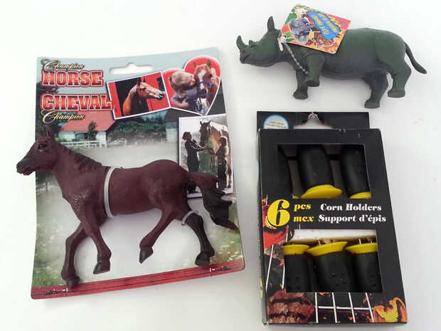 Inspiró a participar en el Concurso de pegamento caliente fui a la tienda local de $2 y compré un cheapo pistola de pegamento caliente y un par de animales de juguete de plástico. Tomando un ejemplo de mikeasaurus y su dinosaurio titulares de mazorca
