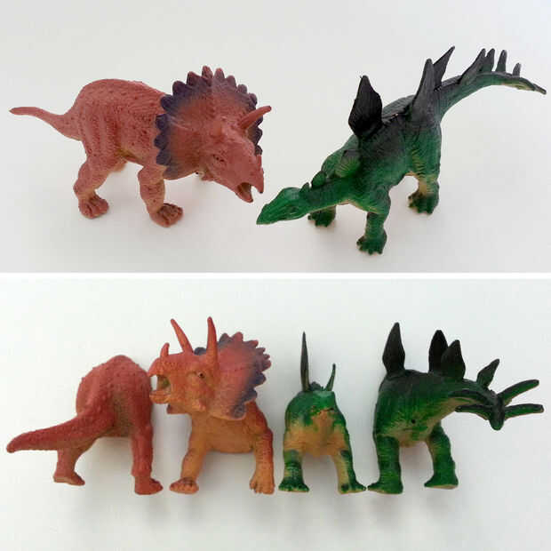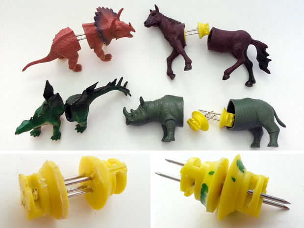 Animales plástico hueco casi todos los juguetes se fabrican en dos mitades, Unidas en el medio - la mitad delantera y la espalda. Usando un cuchillo de la manía aguda, se puede cortar la costura de Unión y el animal de juguete es limpio en 2 partes.