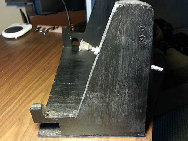 Perfore agujeros en la capa 3/4" para los tornillos de ajuste de ángulo. Usé pernos 1/4" con tuercas para fijar el ángulo y cubiertos los extremos con cinta. Tendrás que jugar wih el ángulo para la mejor visualización.