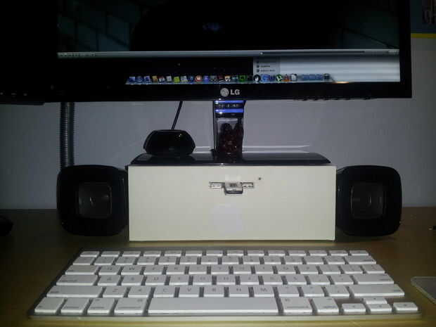 - Altavoces (mina están conectada a una gran unidad 2.1 debajo de mi escritorio, así que pegué a los satélites a los lados de la base).