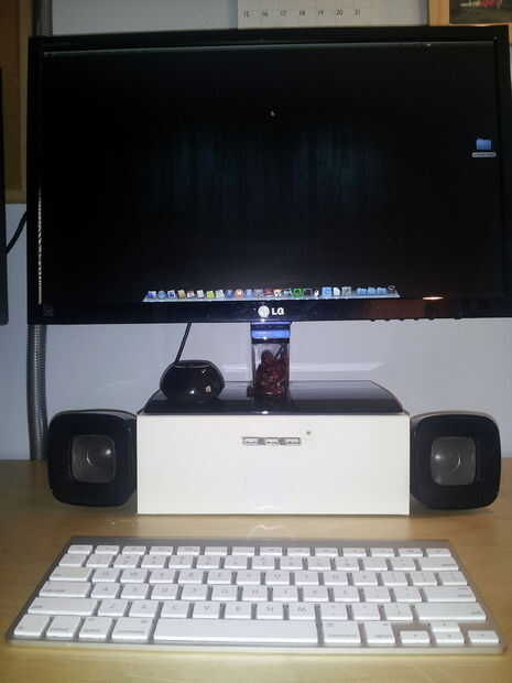 Este es mi soporte de equipo terminado. No hay necesidad de levantarse conectar memorias USB u otros dispositivos en la parte posterior de mi Mini. Además de los altavoces se pegan al lado para que no se mueven alrededor de ya. Lo siento no te guío a través de cada paso detallado, pero este proyecto es muy fácil de completar (si tienes los conocimientos adecuados) y es sólo una sugerencia para darle una idea de lo que puede lograr. Usted podría terminar con resultados diferentes dependiendo de sus necesidades. ¡Buena suerte!