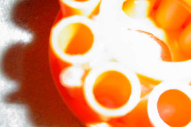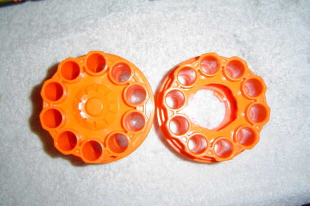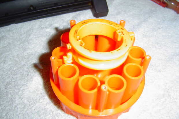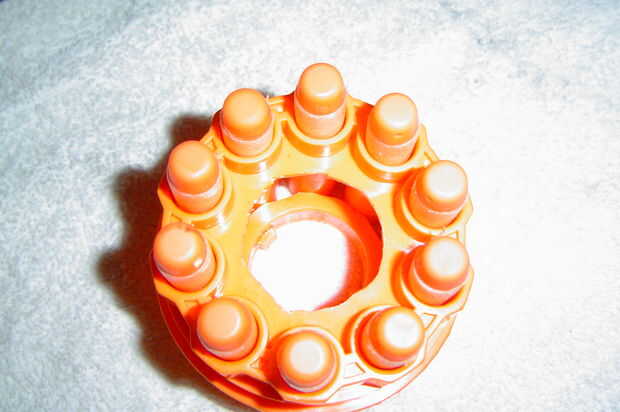 Plach una pequeña cantidad de pegamento en el spot que se muestra, pero sólo cuando en allined con la ranura más pequeña en la pieza del círculo