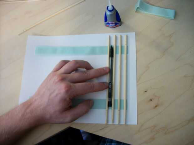 Usé un lápiz mecánico para hacer el espacio (como se ve en la foto segunda y tercera). La cantidad de pegamento que necesitaba era increíblemente mínima. Usé aproximadamente 4 gotas pequeñas diminutas por palillos y está llevando a cabo para arriba realmente bien.