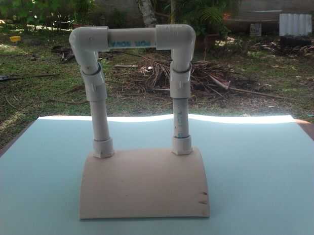 3. hacer el conector de la pantalla a la ayuda de una 1/2" pieza de pvc de la pipa (calefacción fuego y doblando con unos alicates o de par), luego realizar dos agujeros pequeños en cada extremo de 1/4" de los bordes,