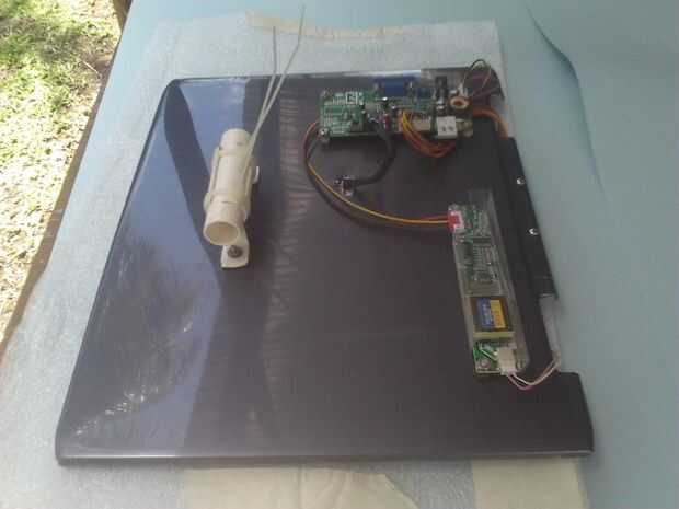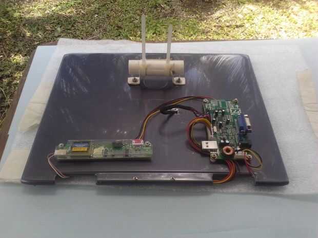 4. juntar todos juntos para localizar los agujeros necesarios en la parte de metal con respaldo de pantalla LCD,