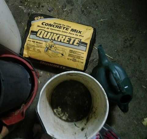 Usé un cubo de 50 galones para mezclar mi concreto pero una carretilla o cubo de basura grande también funcionaría bien. Añadir agua hasta que quede la consistencia floja de mantequilla de maní. Para este proyecto usé aproximadamente 2/3 de la bolsa de 60 libras.
