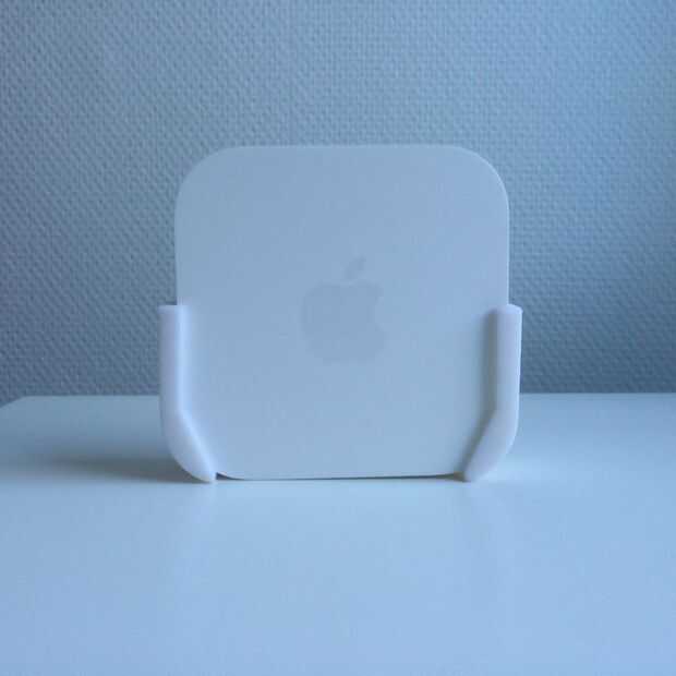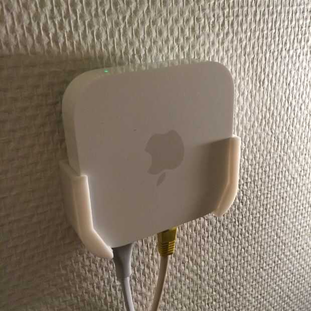 Este simple soporte Apple Airport Express (2ª generación) levanta su router wifi del suelo y ofrece una solución limpia. Puede descargar el archivo STL e imprimirlo parte superior con un borde de 4 mm. El ala aumenta la superficie del objeto en la cama y asegura mejor adherencia. Que ves en las fotos fue impreso en una impresora 3D Kossel claro por un amigo (por desgracia... no tienes una impresora de mi :(