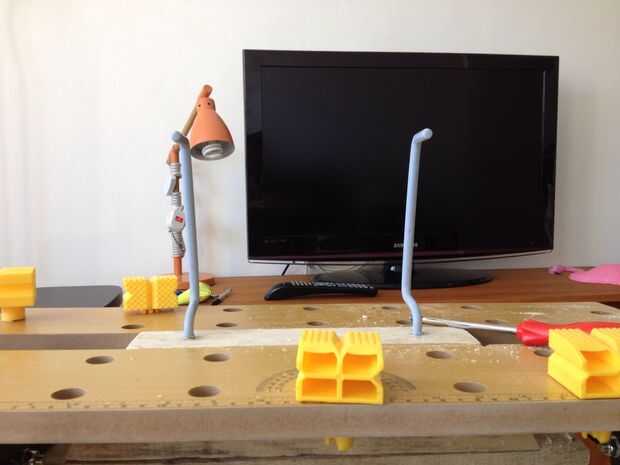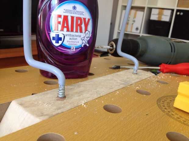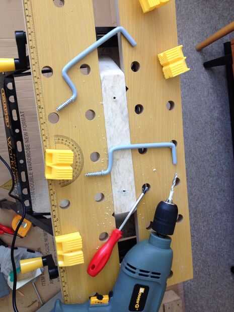 Usando el banco de trabajo, hice un agujero guía en un ángulo un poco inclinado. Puedes ver en la imagen se inclinan hacia fuera. También los incline un poco hacia arriba para se pudieran flexionar bako el peso de la bici.