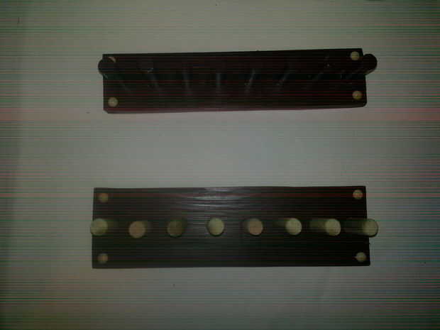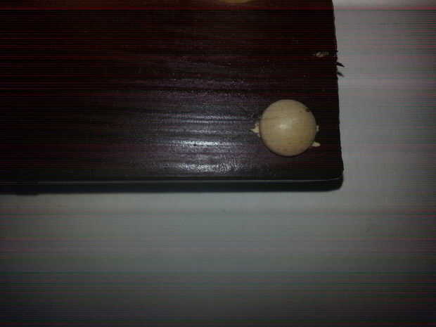Después de lijar todos los lados y bordes. Corte sus tacos a tres pulgadas de largo. Lijar los extremos de éstos también. Si quieres teñir los tacos ponen en los agujeros su corte antes de la tinción. En uno de los construí yo no mancha los tacos, esto le da un aspecto agradable sin la mancha demasiado. Dependiendo de cómo usted cortar los agujeros necesitará pegarlos en. Mina caben perfecto solía un martillo hazles en descarga para que alinee con la parte posterior del marco. Usted también podría cortar longitudes diferentes para darle un aspecto diferente. También no mancha los tapones tampoco. Añadí dos capas de tinte, asegúrese de obtener entre los tacos. Aplique uniformemente sobre la mancha. Me elivate el marco de la im superficie pintura en que la mancha no recoge en el borde del marco. Habrá goteo de y esto evitará que recoger y la construcción. He utilizado 3/8 en tapones. drillling una cuarta parte de lo que lanzó para que el tornillo ajusta dejando espacio para la tapa de ajuste. Yo también pre perforado un agujero más pequeño para el tornillo.