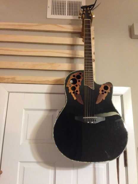 fuentes 1 x guitarra colgador de pared cosita recogí uno de Internet por alrededor de cuatro libras (unos seis dólares) uno soporte el tamaño de la profundidad de la guitarra (recogí uno de un hombase cerca de mí un it costó sobre cincuenta peniques)