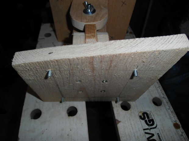 Cada extremo entonces fue atornillado a una placa con tornillos de madera largos.