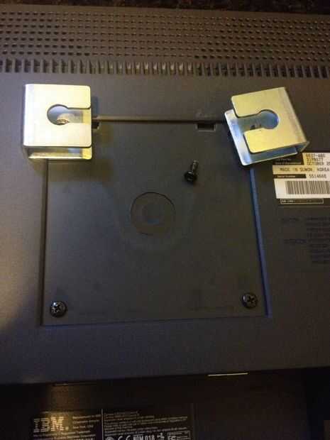 Con los tornillos existentes une los 'titulares de pierna Dresser' atornillándolas a través de los orificios de tornillo existentes de fábrica. Ajústelos con la abertura mirando hacia el interior para mantener al monitor de revestimiento de pared 'aparador pierna titulares' bruja se montará con la abertura hacia arriba.