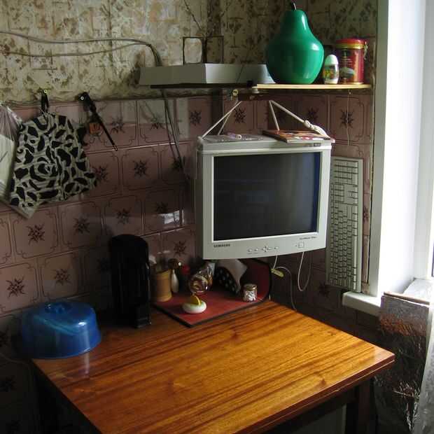 El PC está debajo de la mesa, el teclado se cuelga en la pared, el ratón está sobre la repisa de la ventana. Todo listo para ser utilizado.