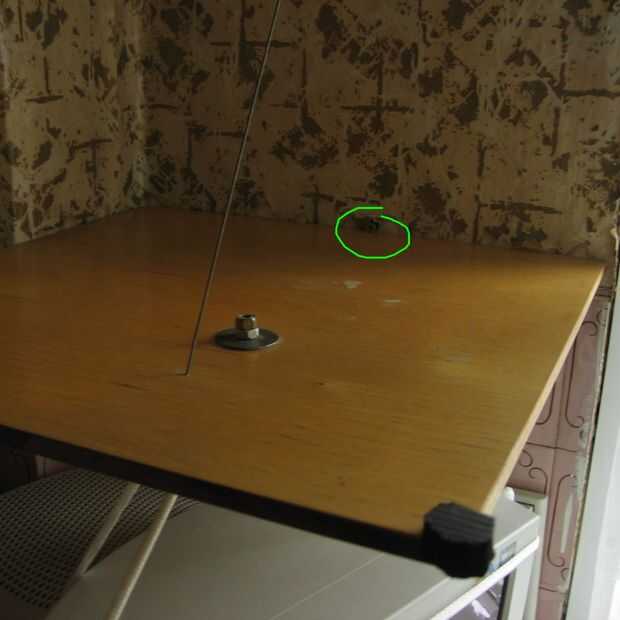 Pongo algunas cuerdas alrededor del monitor que está vinculado a la placa metálica, que se emperna debajo de la plataforma de madera contrachapada. Así, él puede fácilmente ser girado hacia los lados con sólo un dedo.