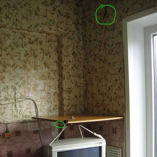 Tenía un viejo monitor CRT de PC y 17" y quería usar en mi pequeña cocina. Si pongo al monitor en la mesa sería demasiado poco espacio deja para comer, etc.. Así surgió esta idea para colgar al monitor sobre la mesa. Al final la cantidad de lugar incluso aumentó desde un estante resistente nuevo buena apareció encima de la mesa.