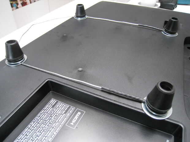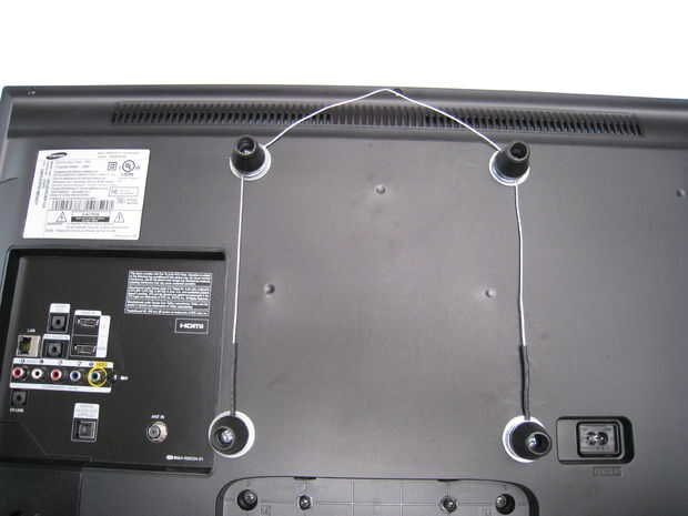 Una vez que todos los tornillos apretados para arriba, intenta recoger la TV verticalmente con el cable para comprobar las conexiones. Volver atrás y corregir cualquier error que pueda haber hecho.