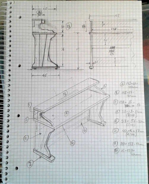 Primera y más importante paso es dibujar un diseño agradable. Tenía que ser sólida y constante con el mínimo número de piezas. Las dimensiones exactas se extrajeron del plan. Hubo una disposición de una junta superior de la rejilla de la música y el metrónomo.