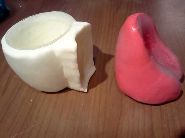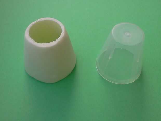 -Luego hacemos un "enchufe de oogoo-masa" para cada una de las pinzas como sigue: preparamos "oogoo-masa" y molde de la mano entre la abrazadera y el "oogoo-cap" para formar un zócalo de conexión. Una vez satisfecho con la forma de la toma suavemente quitamos la pinza, dejando sólo el "oogoo-socket" atado "oogoo-cap". La razón por qué quitar la pinza en esta etapa es que "oogoo-masa" no es muy pegajoso y no se pega muy bien a la abrazadera de cristal mientras que se pega lo suficientemente bien a la tapa de "oogoo-masa".