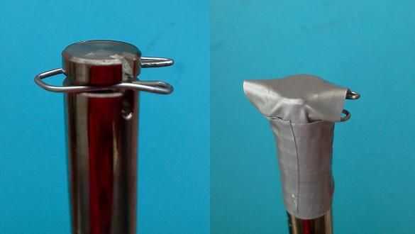 -Inserte el clip en las ranuras y dóblelo para que permanezca en las ranuras. Asegúrelo con cinta adhesiva fuerte.