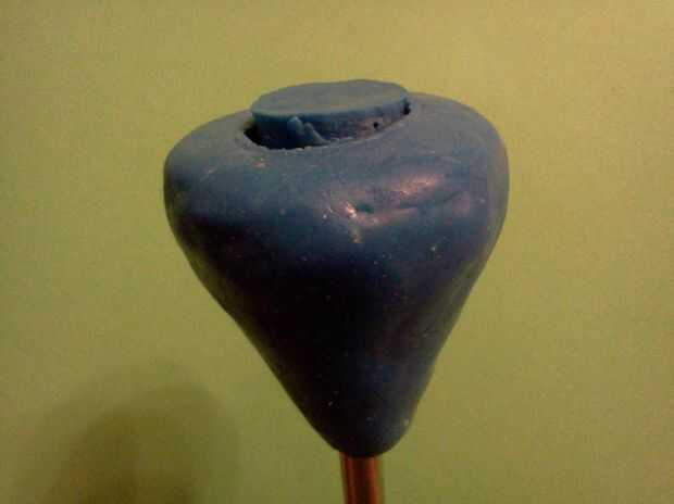 -preparar "oogoo-masa" como se describió anteriormente o utilizar "reciclado oogoo" y moldearlo alrededor del extremo de la varilla para formar el mango. Hice con "oogoo reciclado" para hacer la base de la manija y luego recubierta con el azul fresco "oogoo-masa".